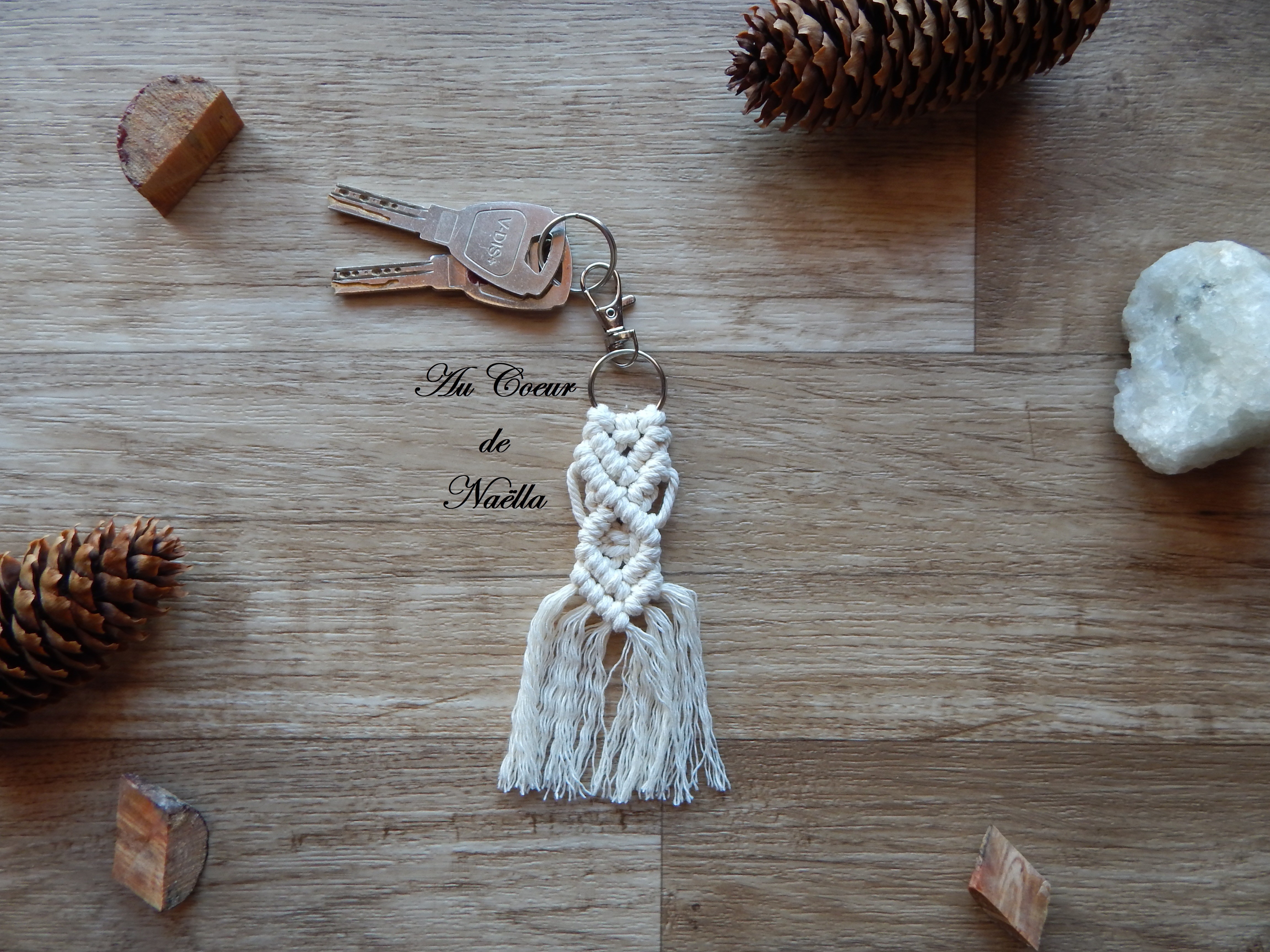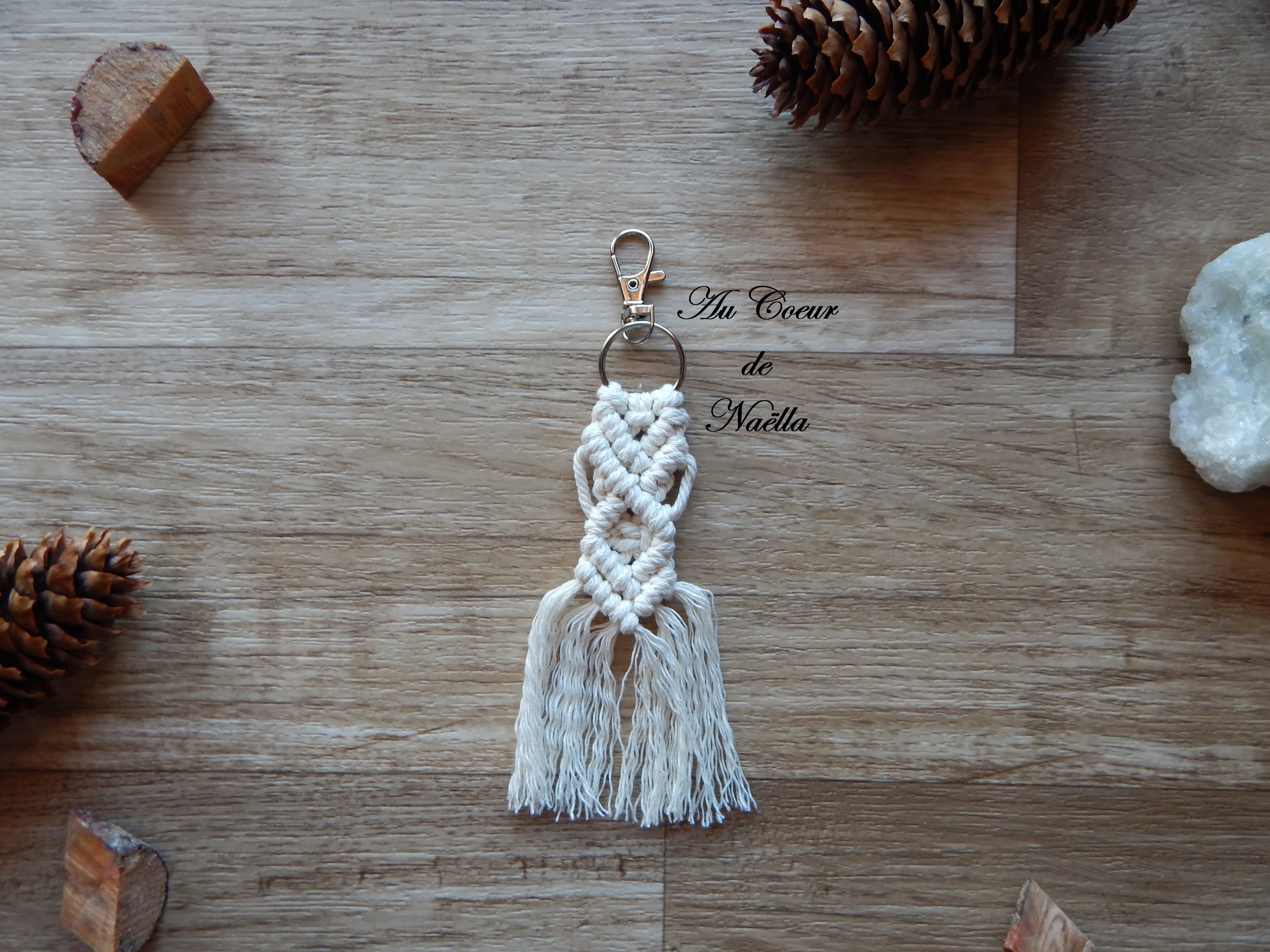 Le porte-clé ou bijou de sac à main ALIELLA confectionné en macramé apportera une touche bohème chic à votre style.