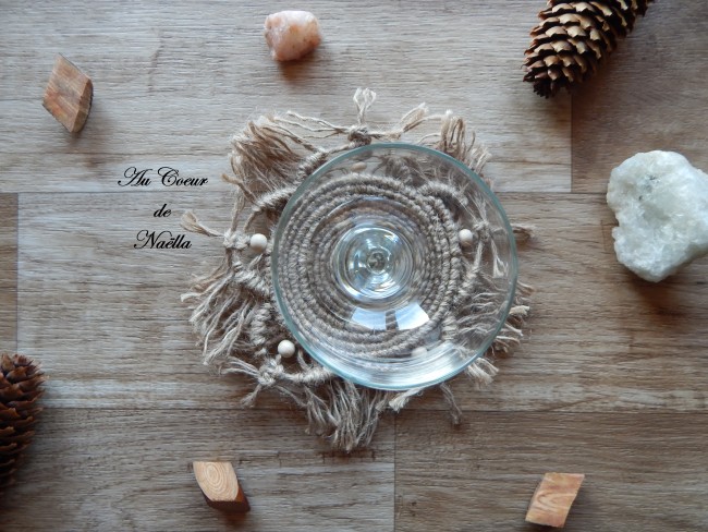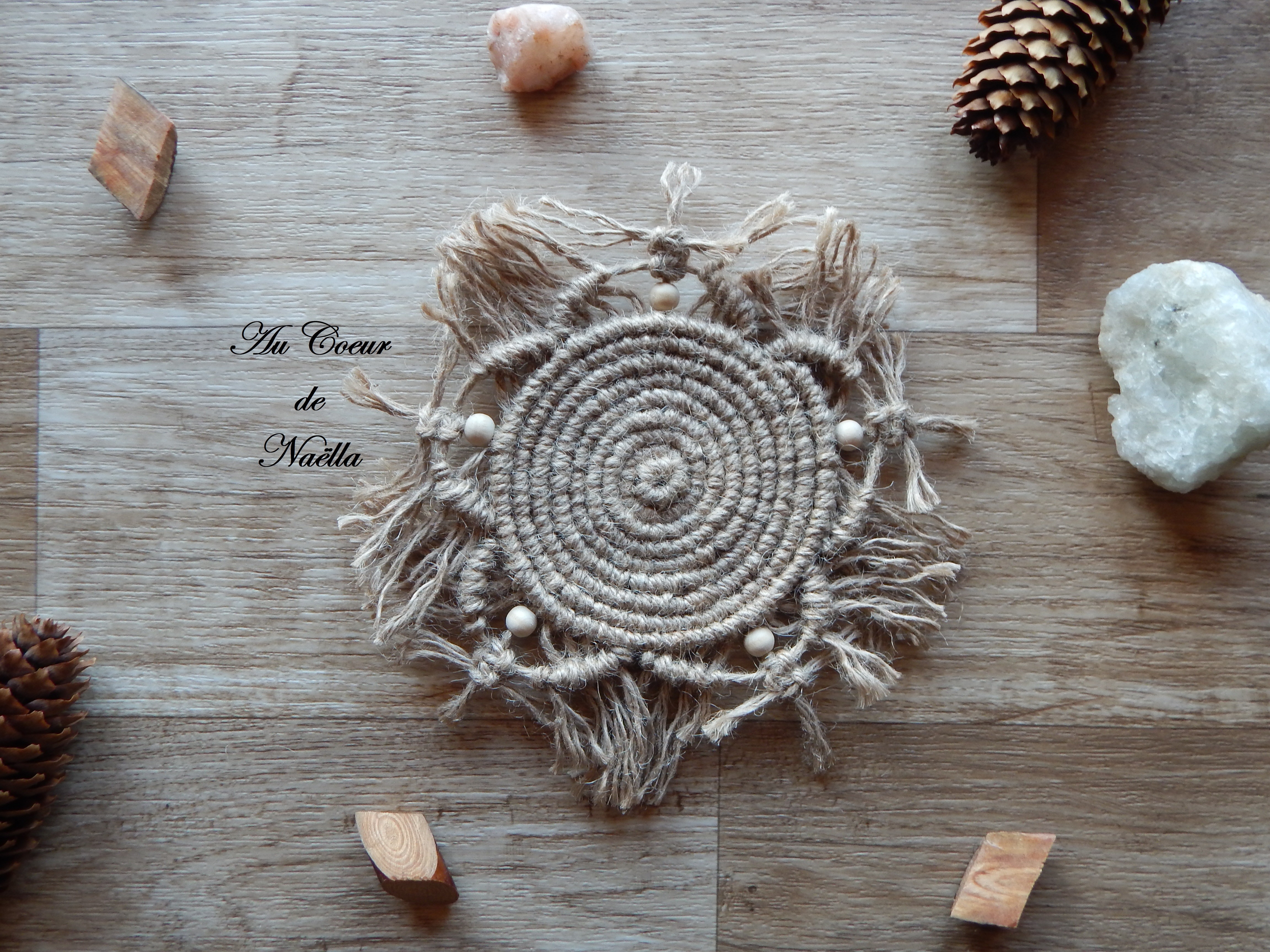 Matériaux : jute, perles en bois brut.