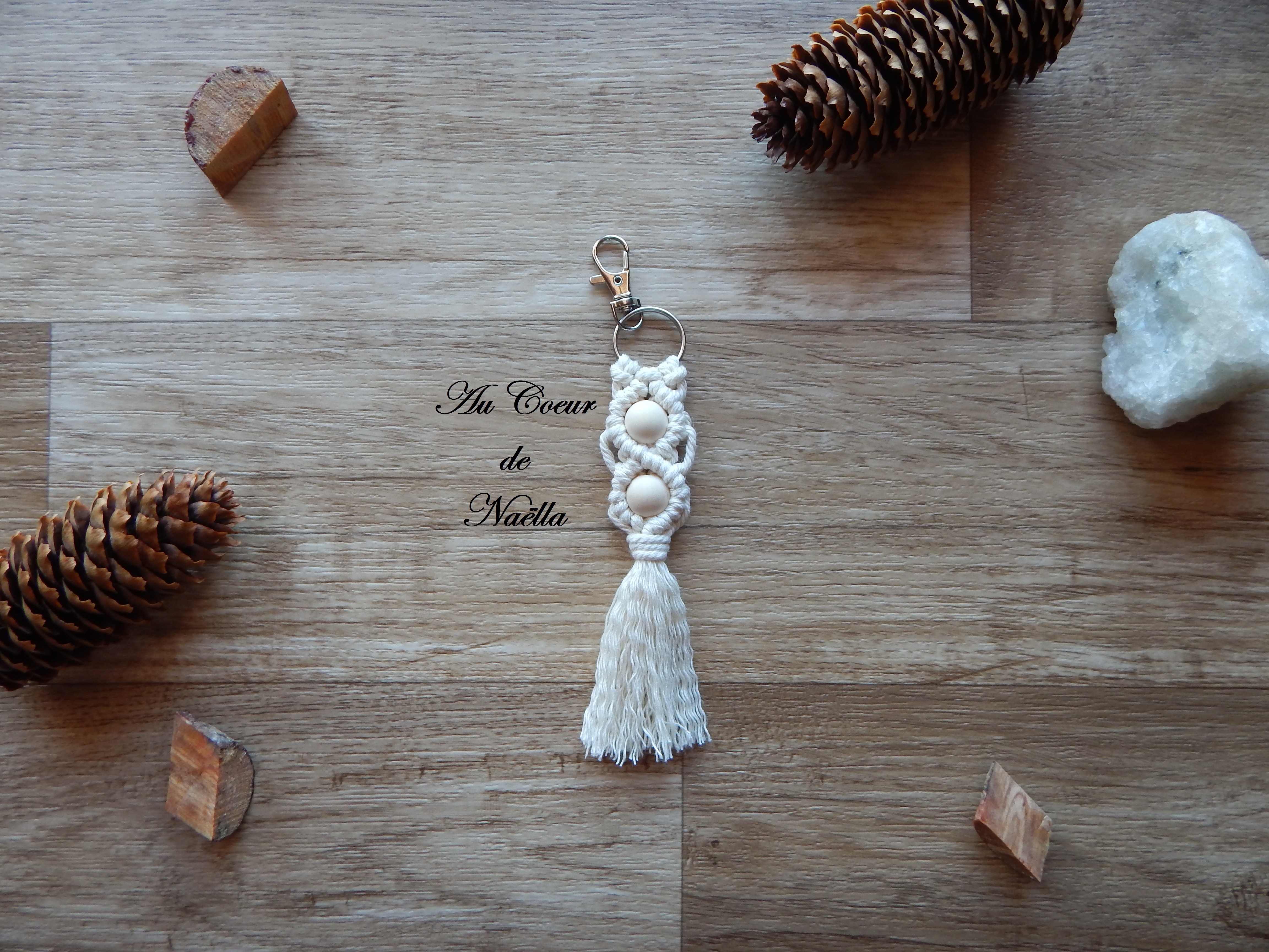 Le porte-clé ou bijou de sac à main DOUCELLA confectionné en macramé apportera une touche bohème chic à votre style.