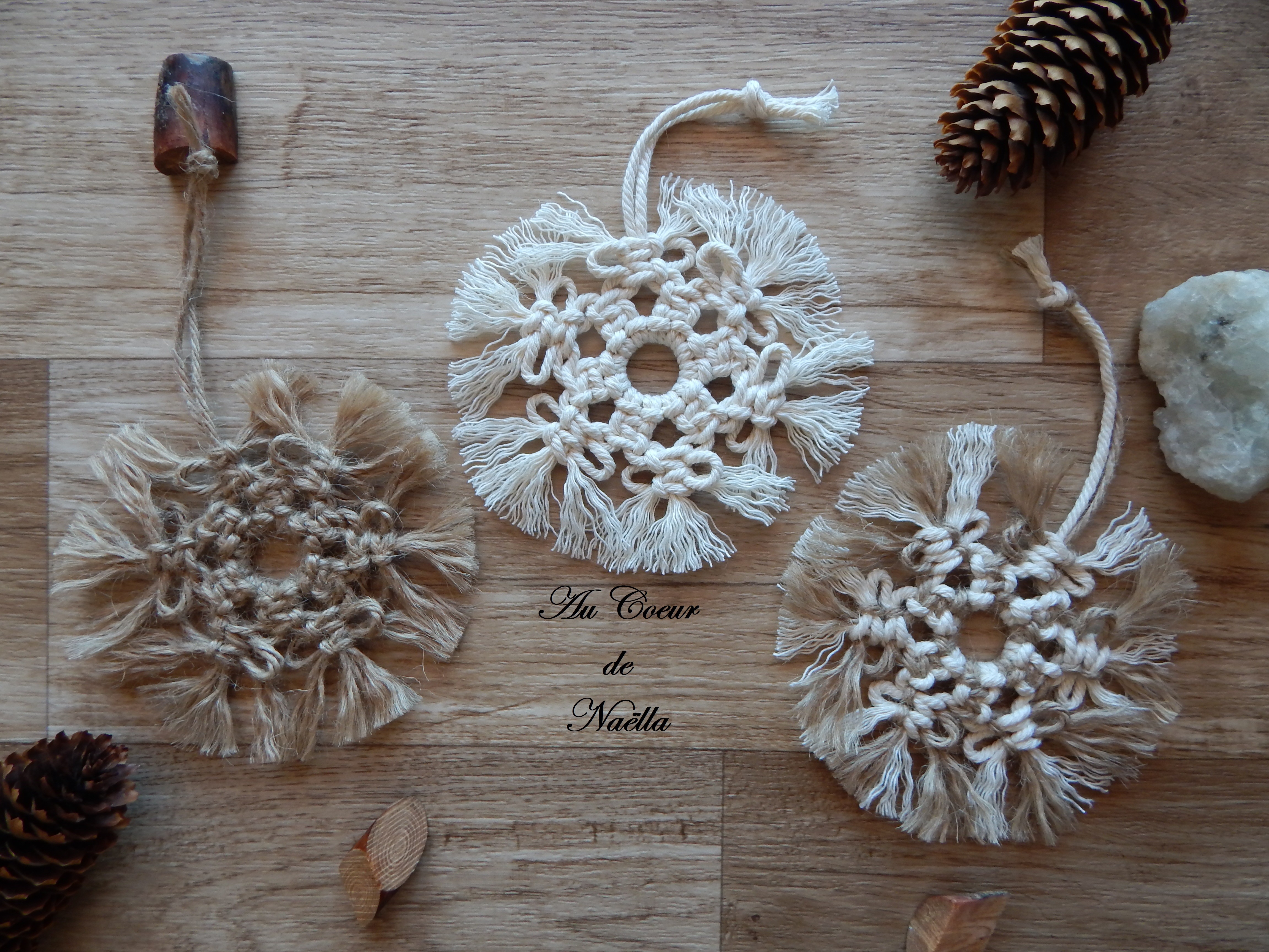 Matériaux : jute, coton écru, jute/coton écru, anneaux en métal.