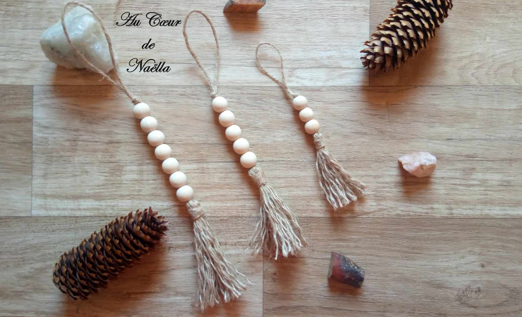 Matériaux : jute, perles en bois brut.