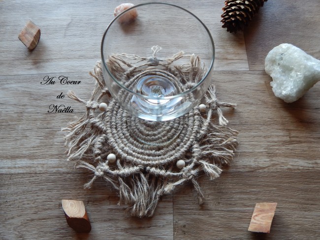 NAPPERON / DESSOUS DE VERRE FLEUR MACRAMÉ JUTE "SPELLA"